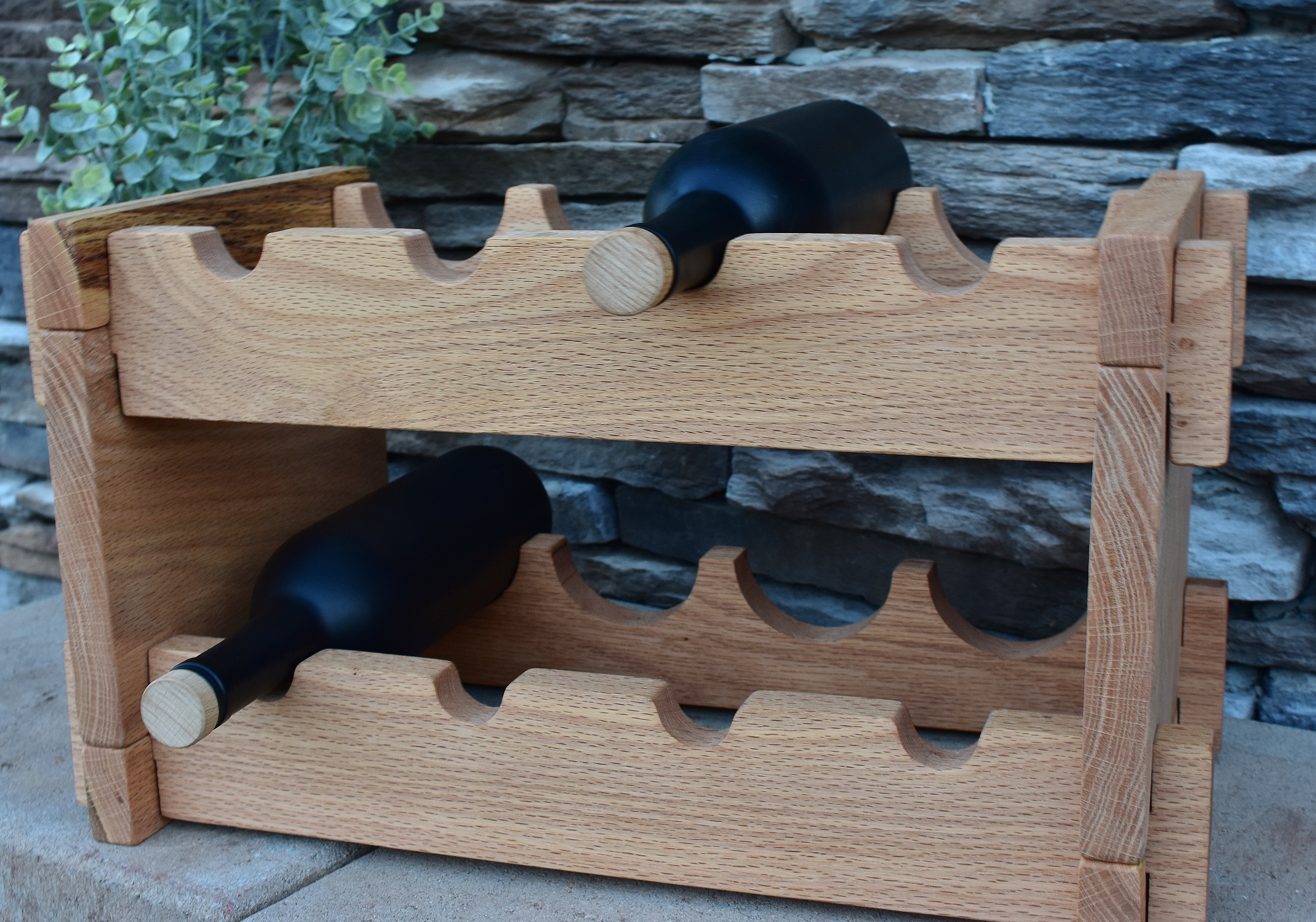 A ‘build as you go’ set. This rack is made from rustic red oak and designed to grow with your wine collection.